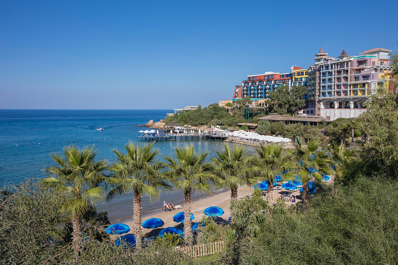 Doğu Akdeniz’in berrak sularına uzanan Kuzey Kıbrıs Türk Cumhuriyeti’nin en güzel noktalarından biri olan Zephyros koyunda yer alan Merit Crystal Cove Hotel & Casino “mavi ile yeşilin” kucaklaştığı, denize sıfır bir konumda yer almaktadır.